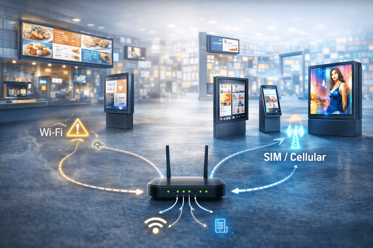 If your screens generate revenue (ads) or carry operational importance (menus, pricing, wayfinding), your connectivity setup has to be resilient.